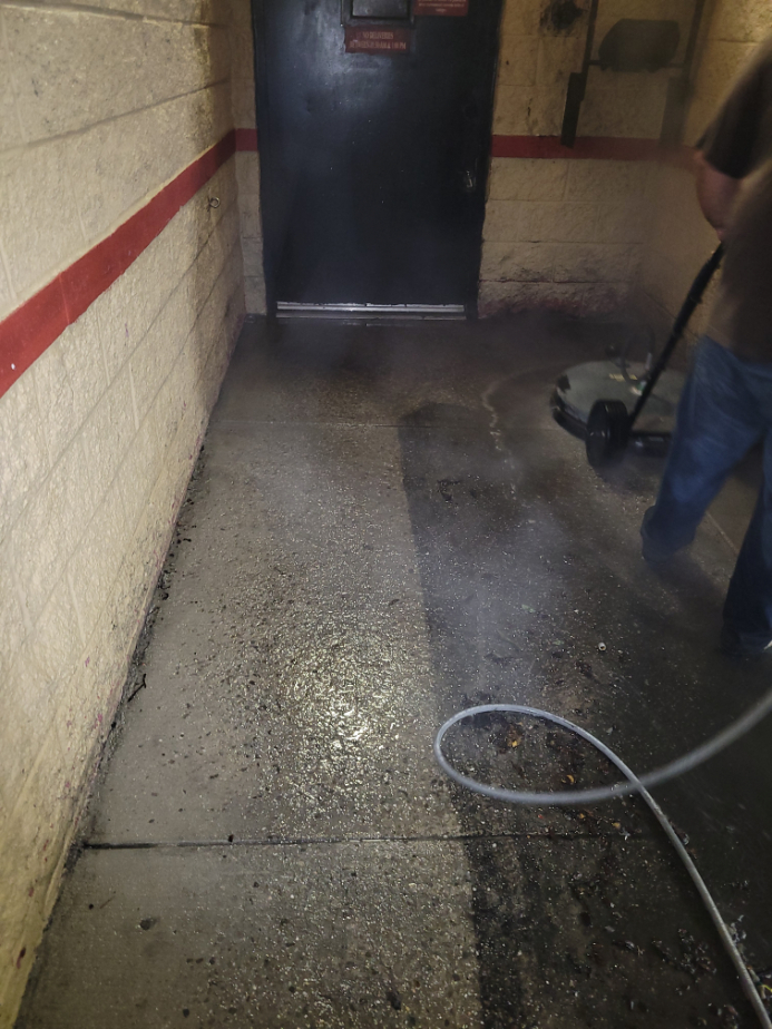 Pressure washed drive thru, dumpster pad, and sidewalks at Bojangles restaurant.